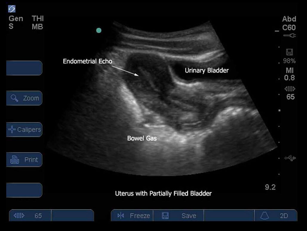 Female Pelvis 11 Image Uterus with Partially Filled Bladder Endometrial Echo Bowel Gas Urinary Bladder