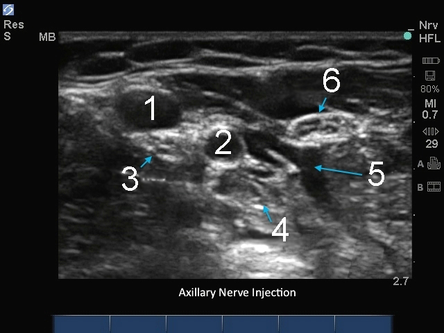 M-Turbo: Axillary Nerve Post Injection Image M-Turbo: Axillary Nerve Post Injection Vein Artery Median Nerve Radial Nerve Local Anesthetic Ulnar Nerve