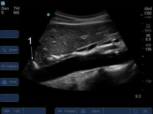 Serie S: Imagen de vista sagital de la aorta proximal/diafragma