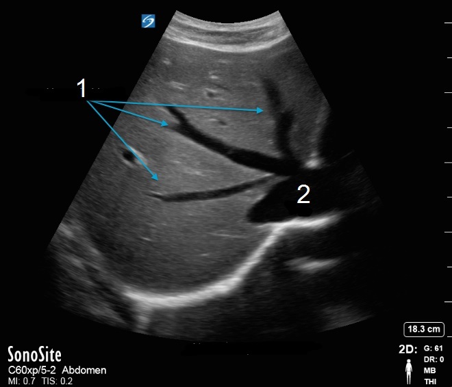 Image : Vue transverse du foie et des veines hépatiques Veines hépatiques Veine cave inférieure (VCI)