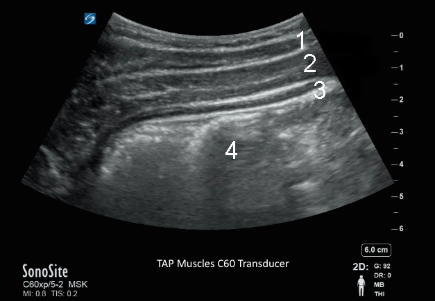 Muscles abdominaux visualisés par sonde linéaire Muscles abdominaux visualisés par sonde C60 Muscle oblique externe de l'abdomen Muscle oblique interne de l'abdomen Muscle transverse Cavité péritonéale
